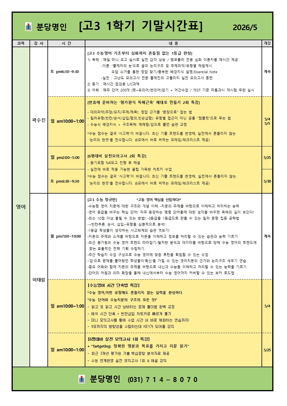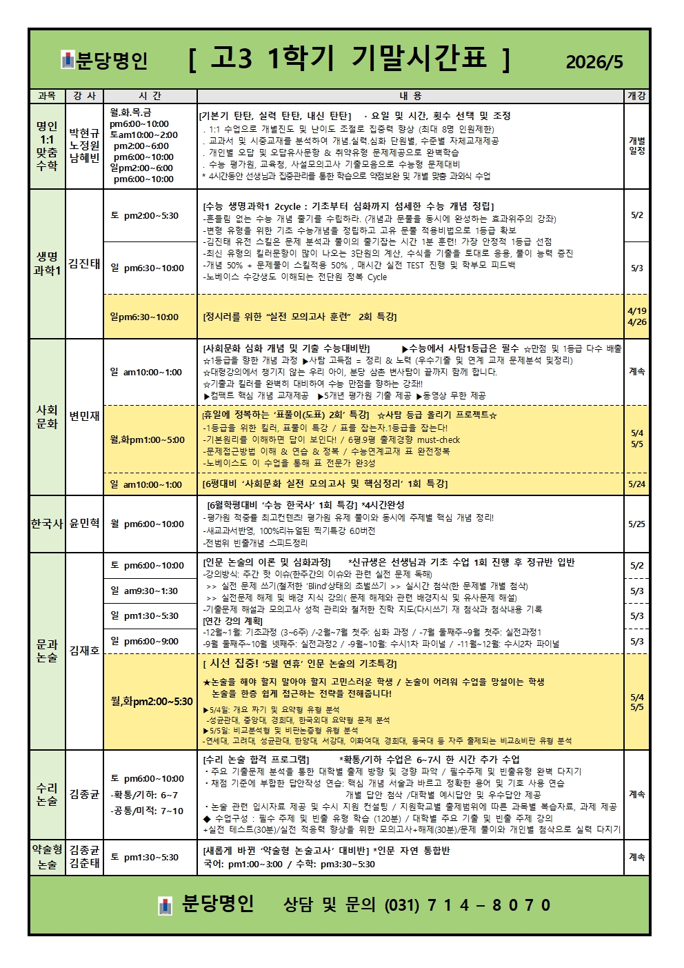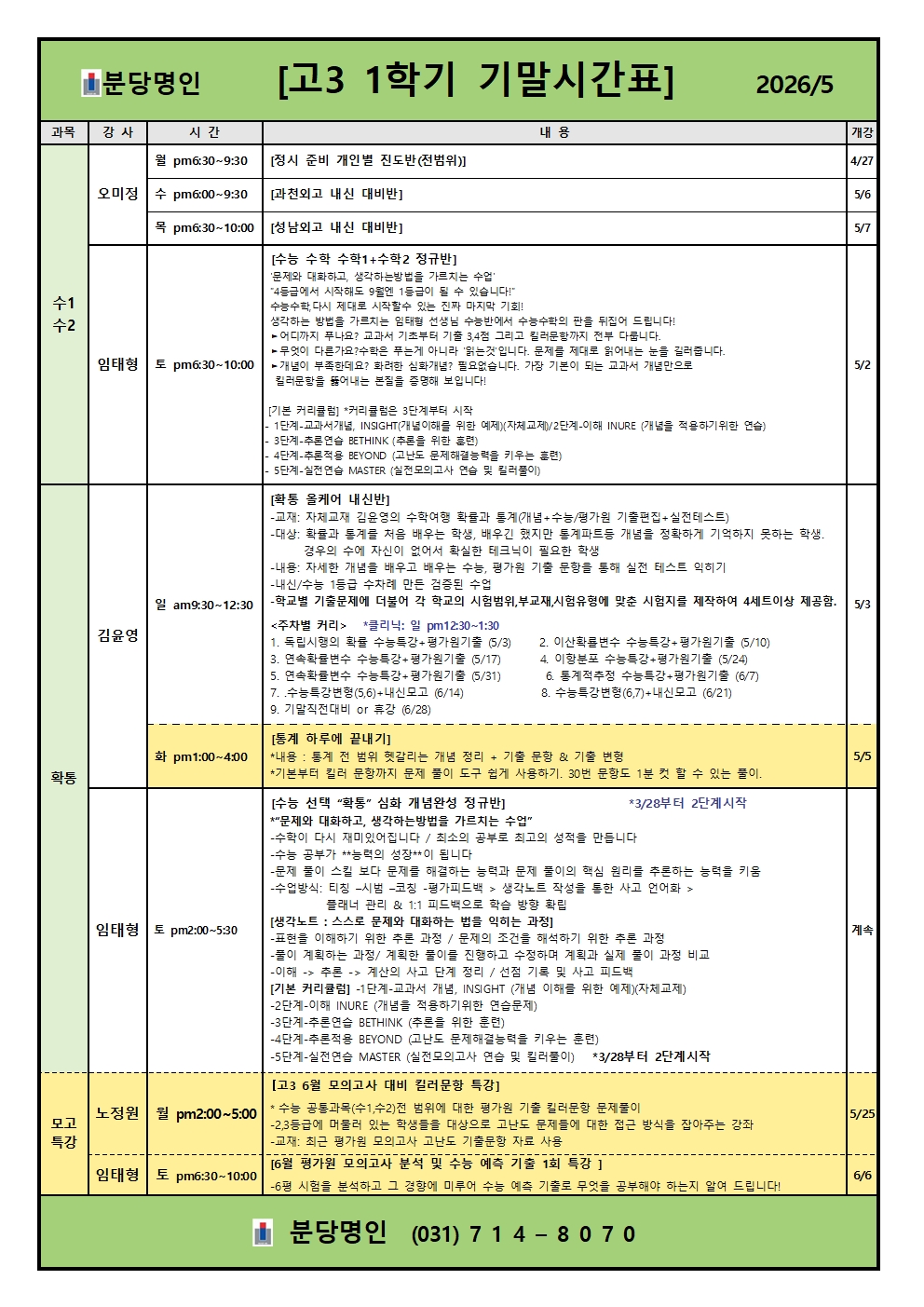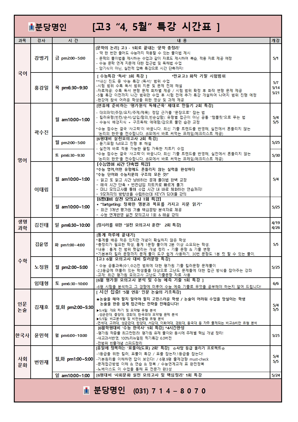 수집항목 : 이름, 핸드폰번호, 학교, 학년, 계열